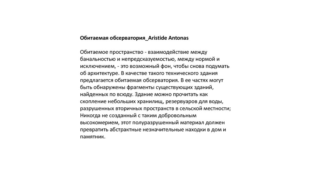 Обитаемая обсерватория_Aristide AntonasОбитаемое пространство - взаимодействие между