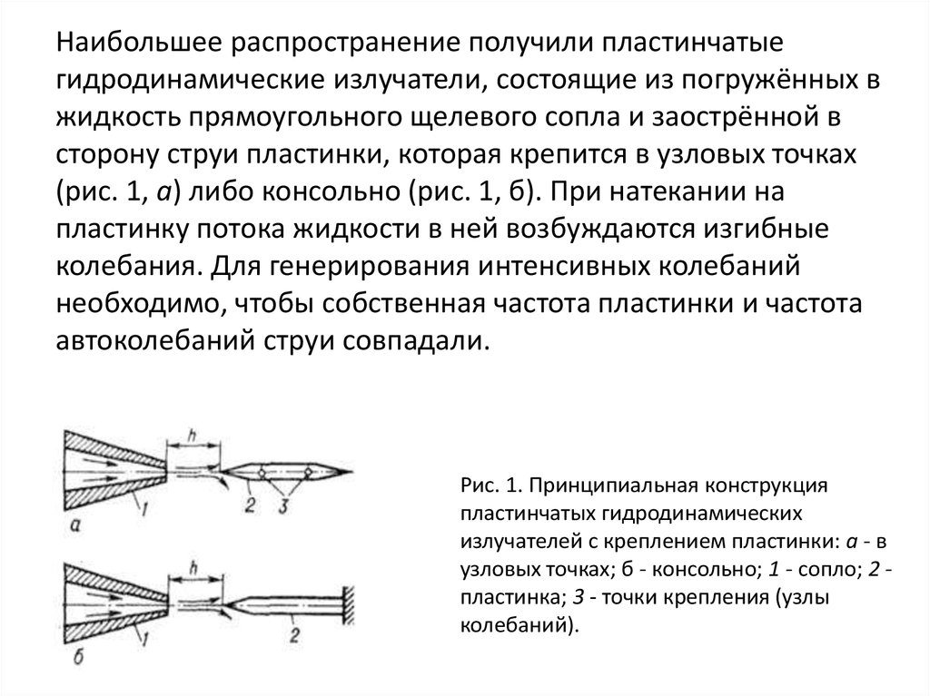 Наибольшее распространение получили пластинчатыегидродинамические излучатели, состоящие из погружённых в