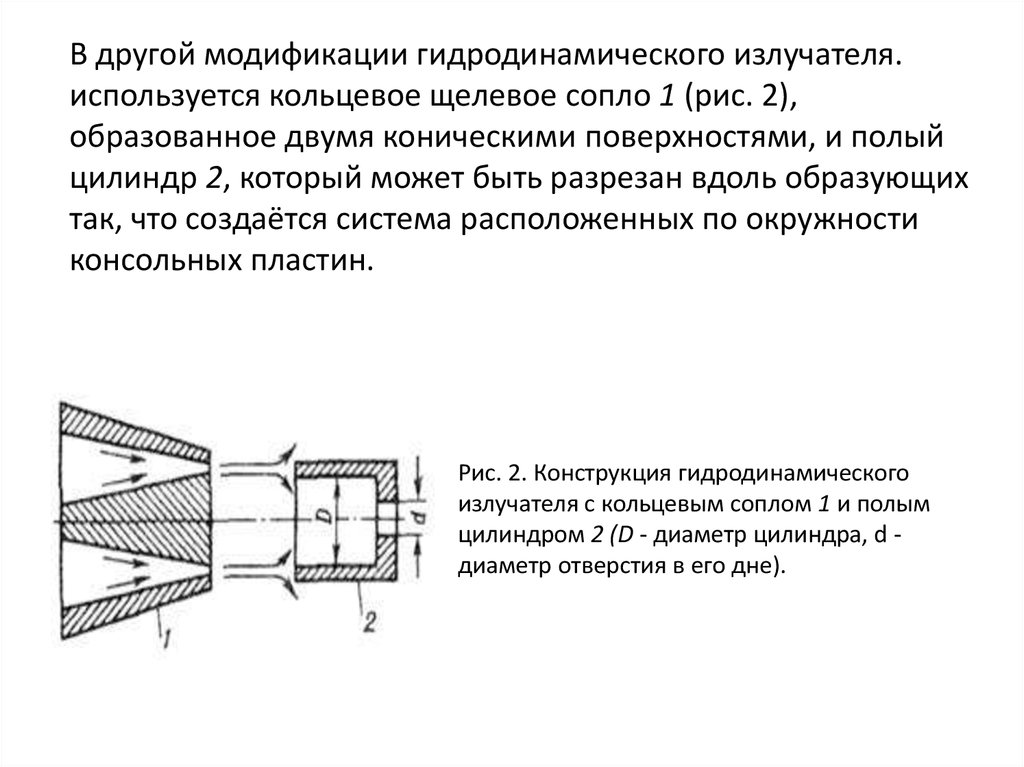 Излучение гидродинамическим излучателем возможно такжеза счёт пульсации кавитационной области, образующейся