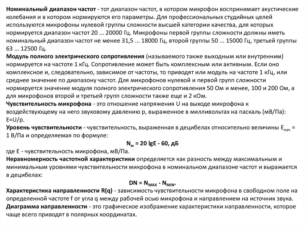 Основные параметры микрофонов: номинальный диапазон частот, модуль полного