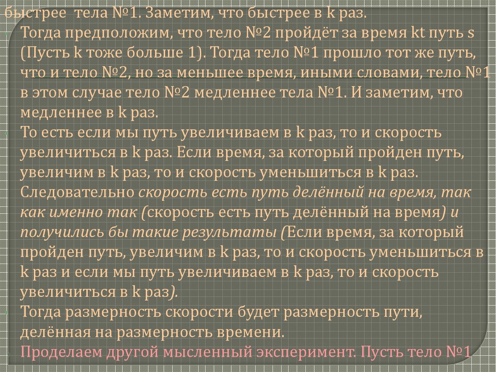 • То есть если мы путь увеличиваем в k раз, то и скорость
