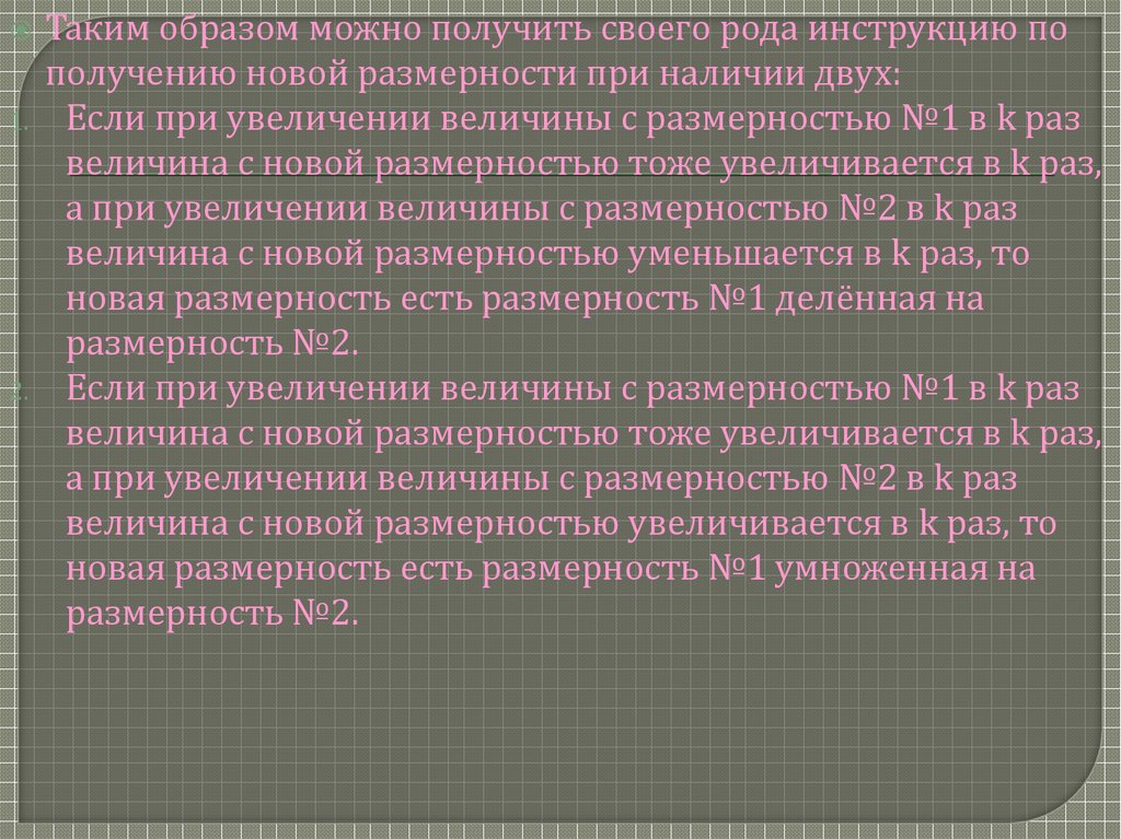 Здесь всё достаточно просто:• Производные размерности – это те размерности, которые можно