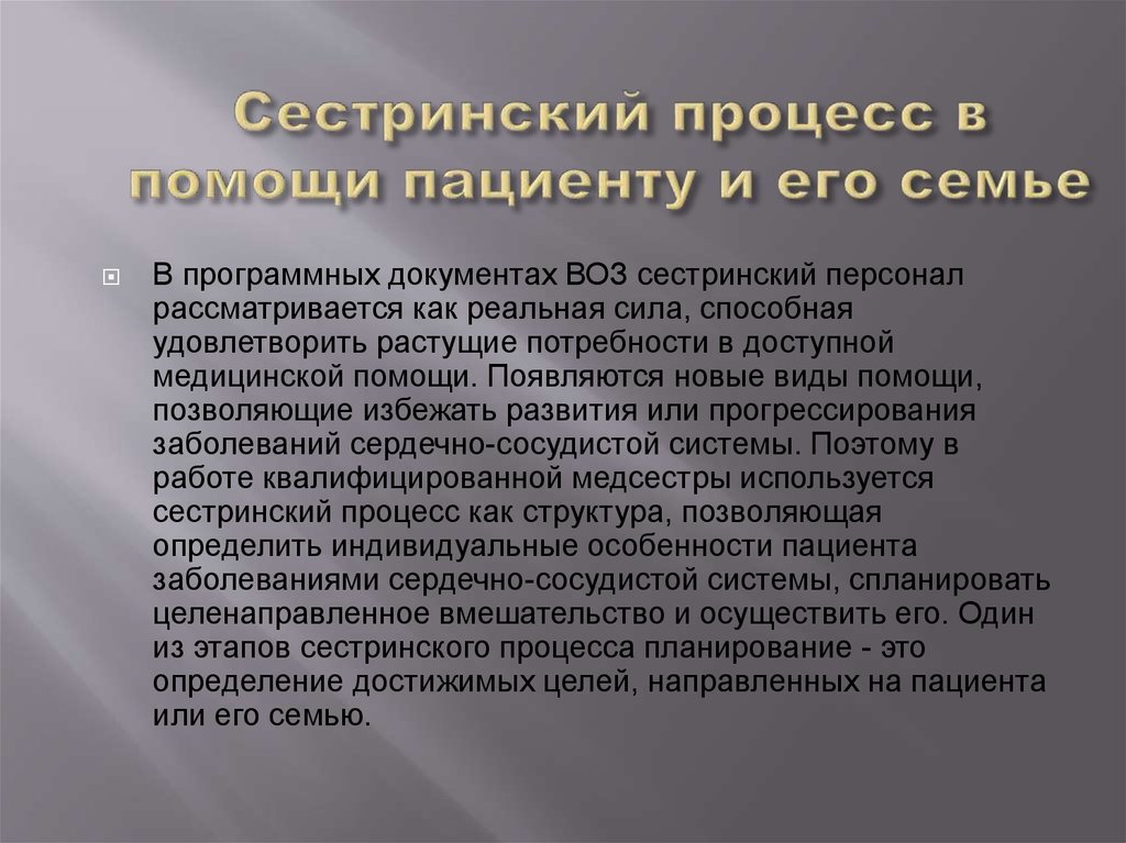 Особенности оказания сестринской помощи семье и пациенту с заболеваниеми сердечно-сосудистой системы