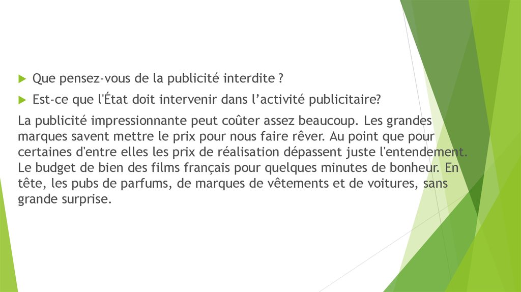 Que pensez-vous de la publicité interdite ?Est-ce que l'État doit intervenir dans l’activité publicitaire?