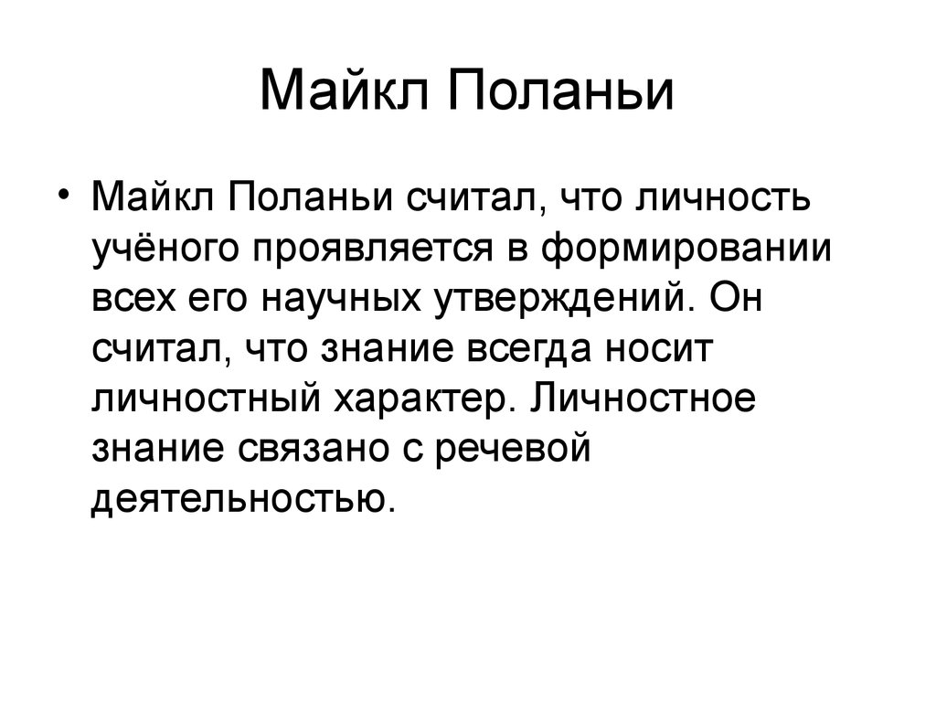 • Майкл Поланьи считал, что личностьучёного проявляется в формировании