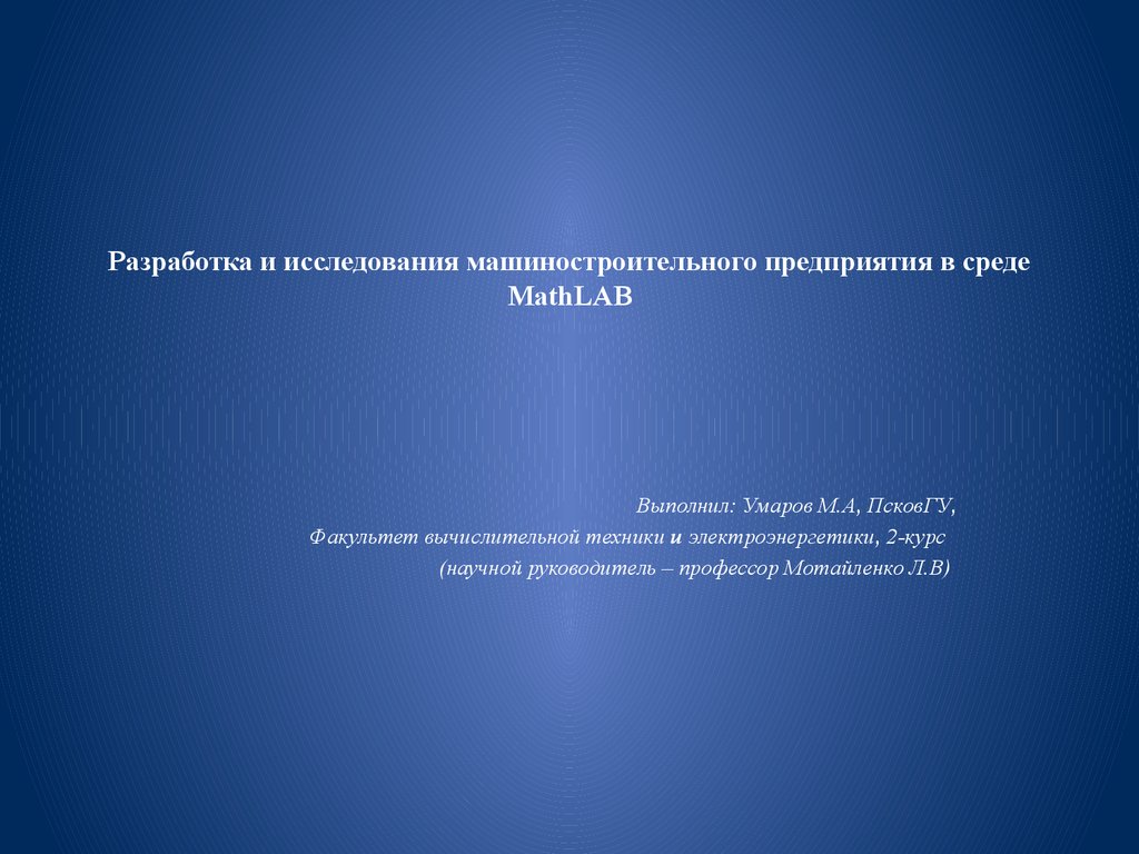 1. Разработка и исследования машиностроительного предприятия в среде MathLAB