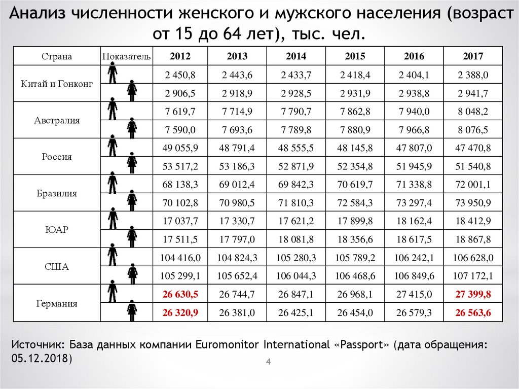 Показатели:численность женского и мужского населения в трудоспособном возрасте (от 15 до 64