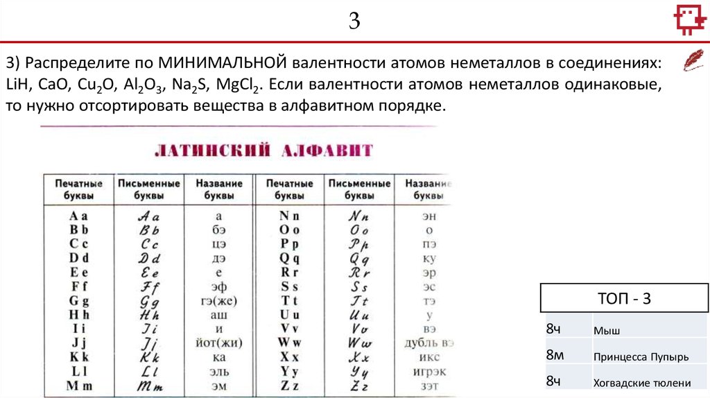неметаллов одинаковые, то нужно отсортировать вещества в алфавитном порядке.