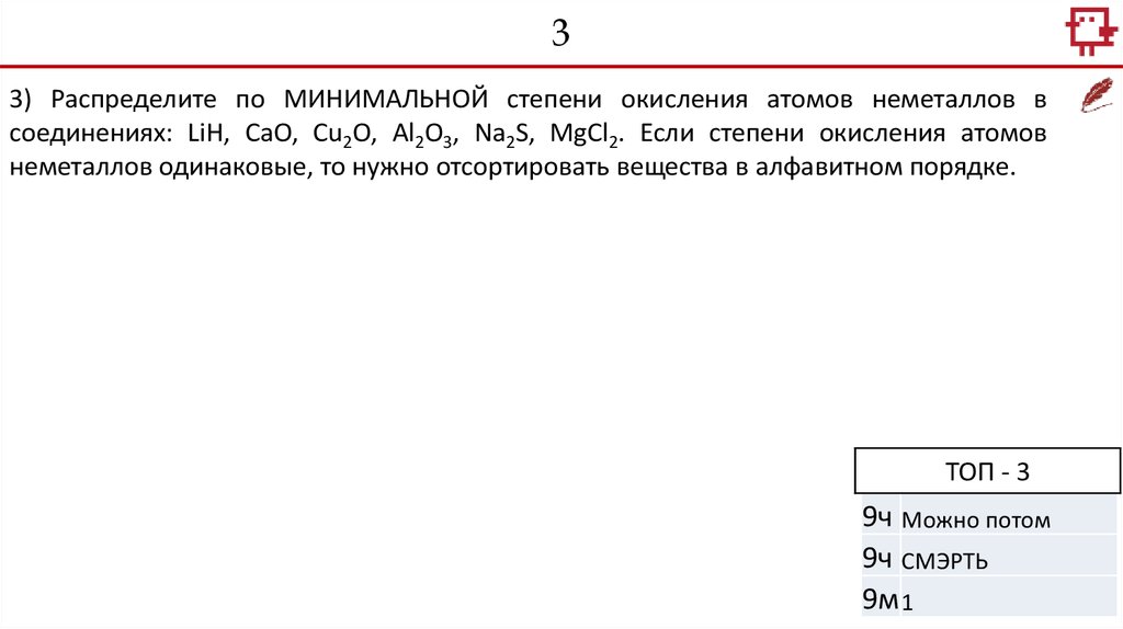 33) Распределите по МИНИМАЛЬНОЙ степени окисления атомов неметаллов в