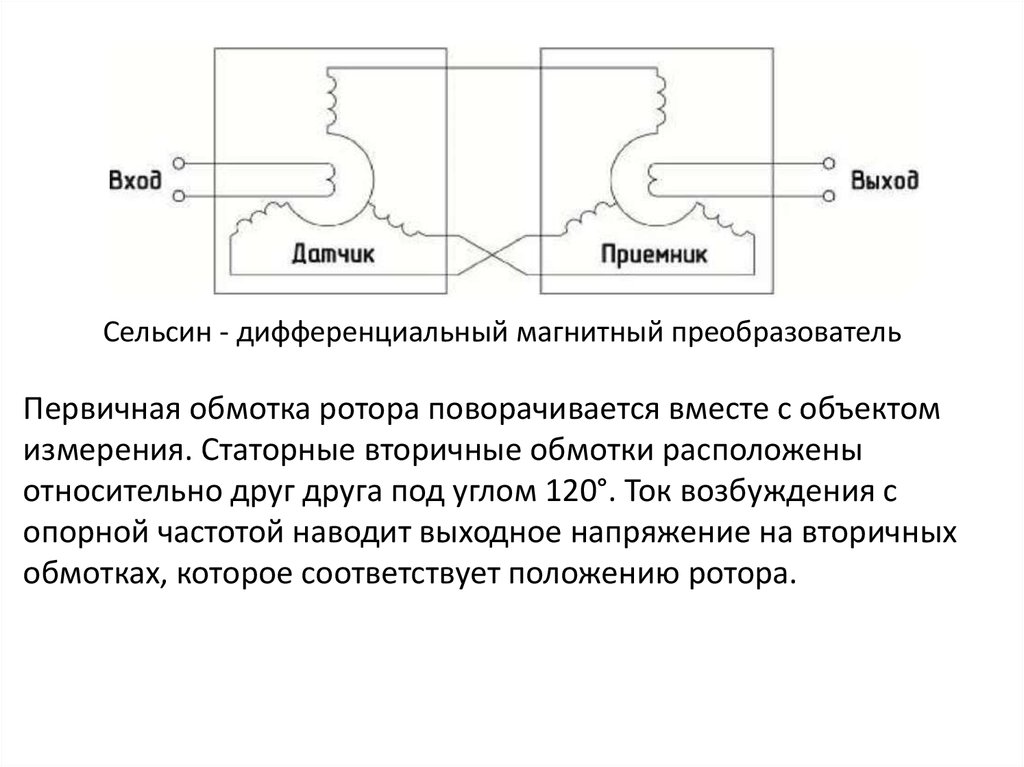 Сельсин - дифференциальный магнитный преобразовательПервичная обмотка ротора поворачивается вместе с объектом