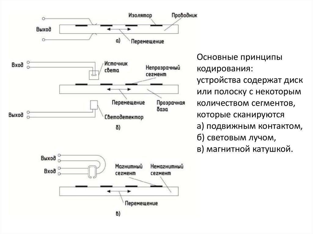 Используются два основных типа кодирующихустройств: шифраторы приращений и абсолютные