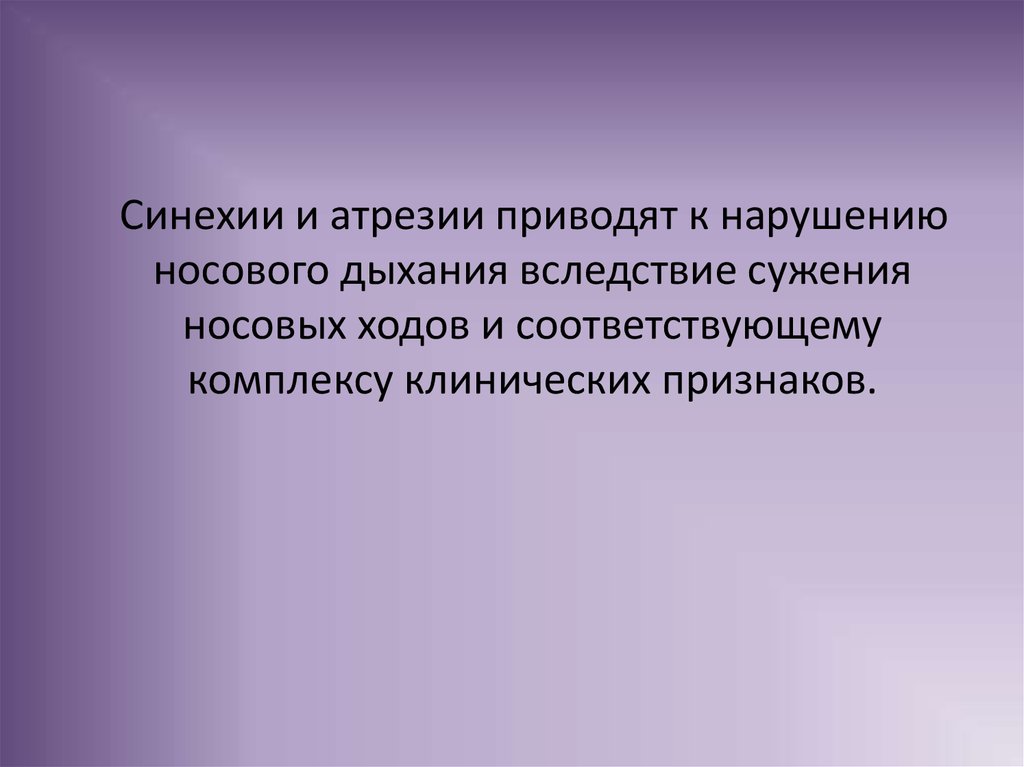 Синехии и атрезии приводят к нарушениюносового дыхания вследствие сужения