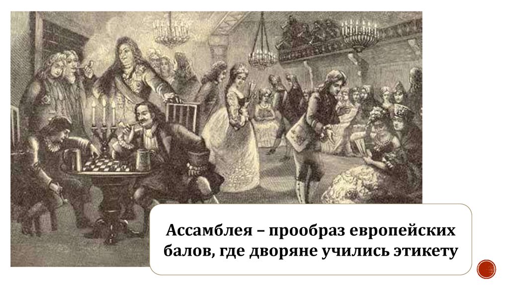 Ассамблея – прообраз европейскихбалов, где дворяне учились этикету