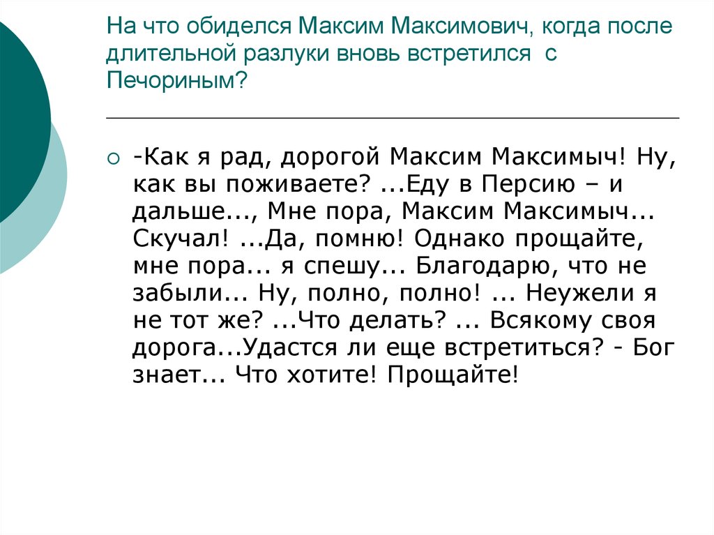 На что обиделся Максим Максимович, когда последлительной разлуки вновь встретился с