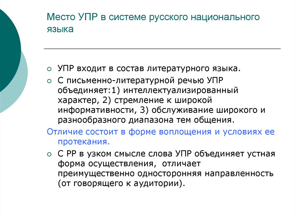2)место УПР в составе ЛЯ, соотношение УПР с
