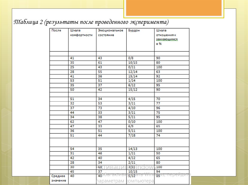 Таблица 2 (результаты после проведенного эксперимента)7. Из приведенных ранее таблиц мы видим, что произошли некоторые изменения. А именно: изменилось состояние комфортности . На