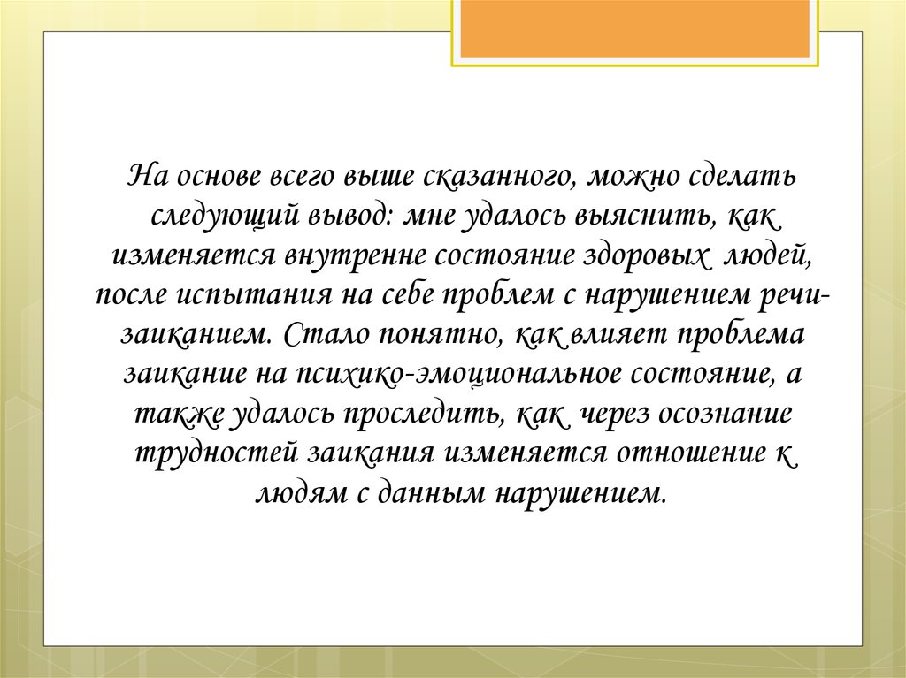 Изменение внутреннего состояния здоровых людей после испытания на себе проблем с нарушением речи
