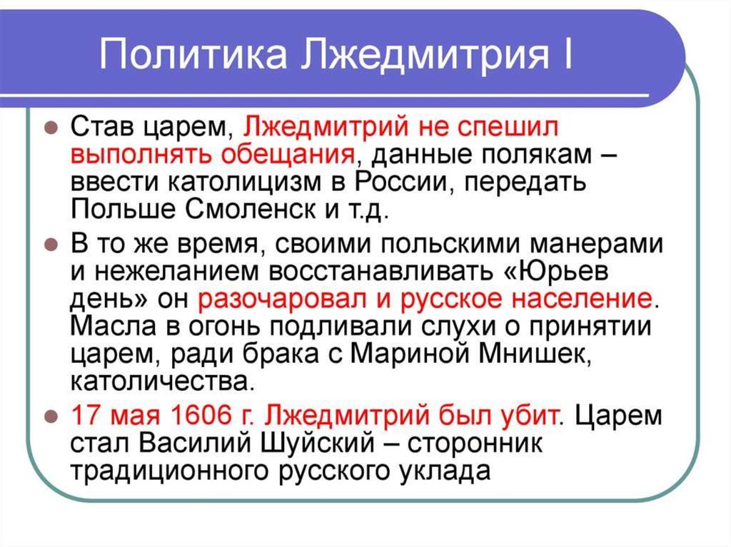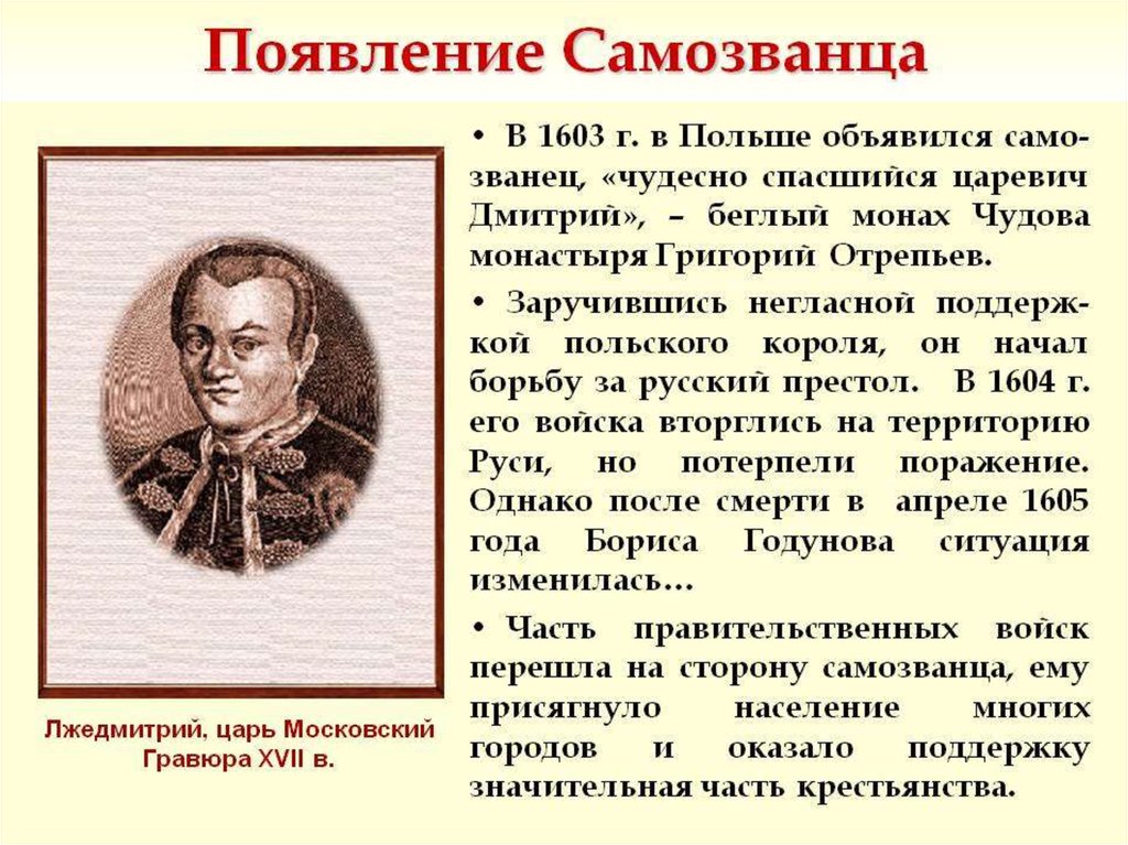 4. Лжедмитрий I. Проблема самозванства на Руси в начале
