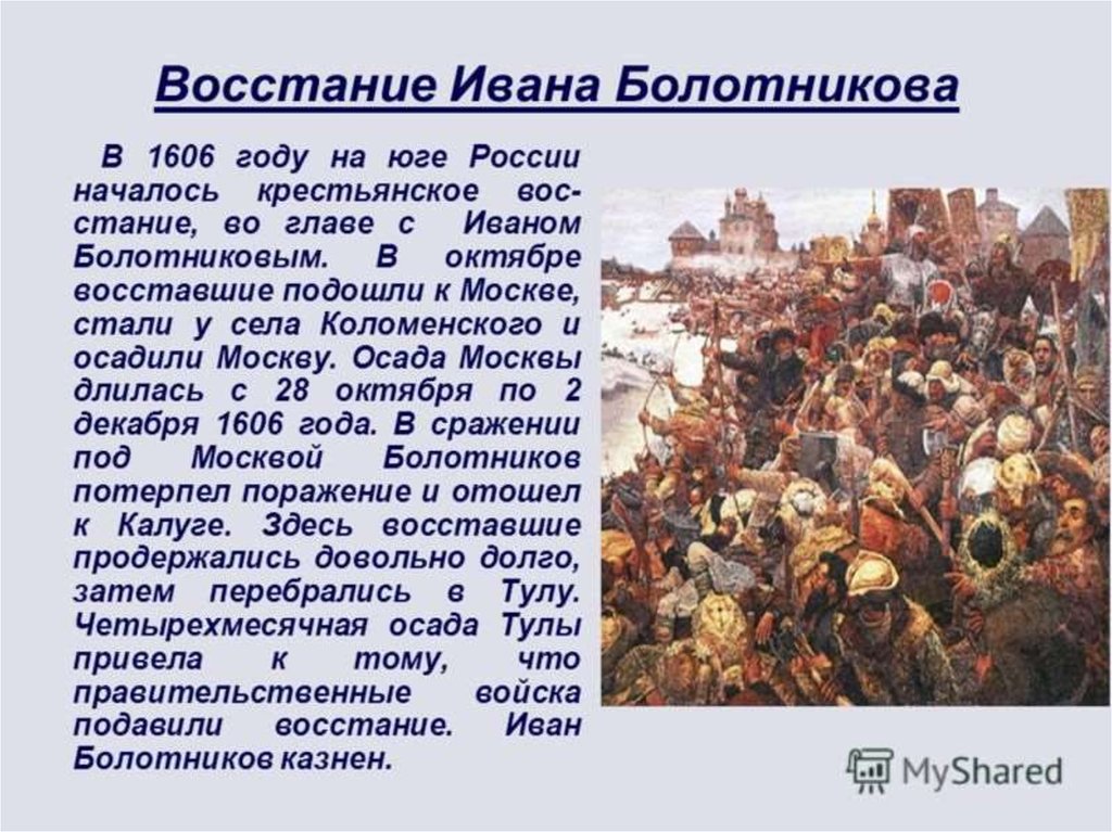 7. Восстание Ивана Болотникова.