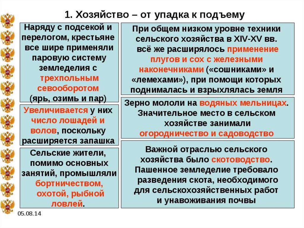 1.Особенности сельского хозяйства в XV-XVI вв.2.Развитие ремесла и торговли в XV-XVI вв.