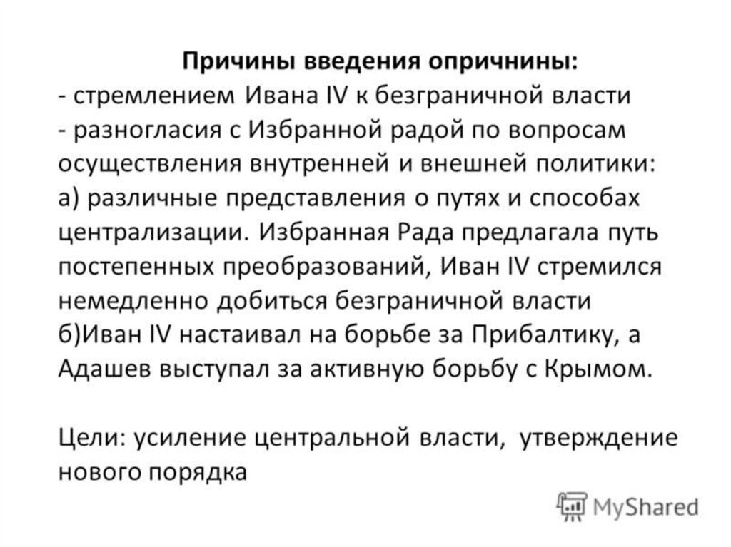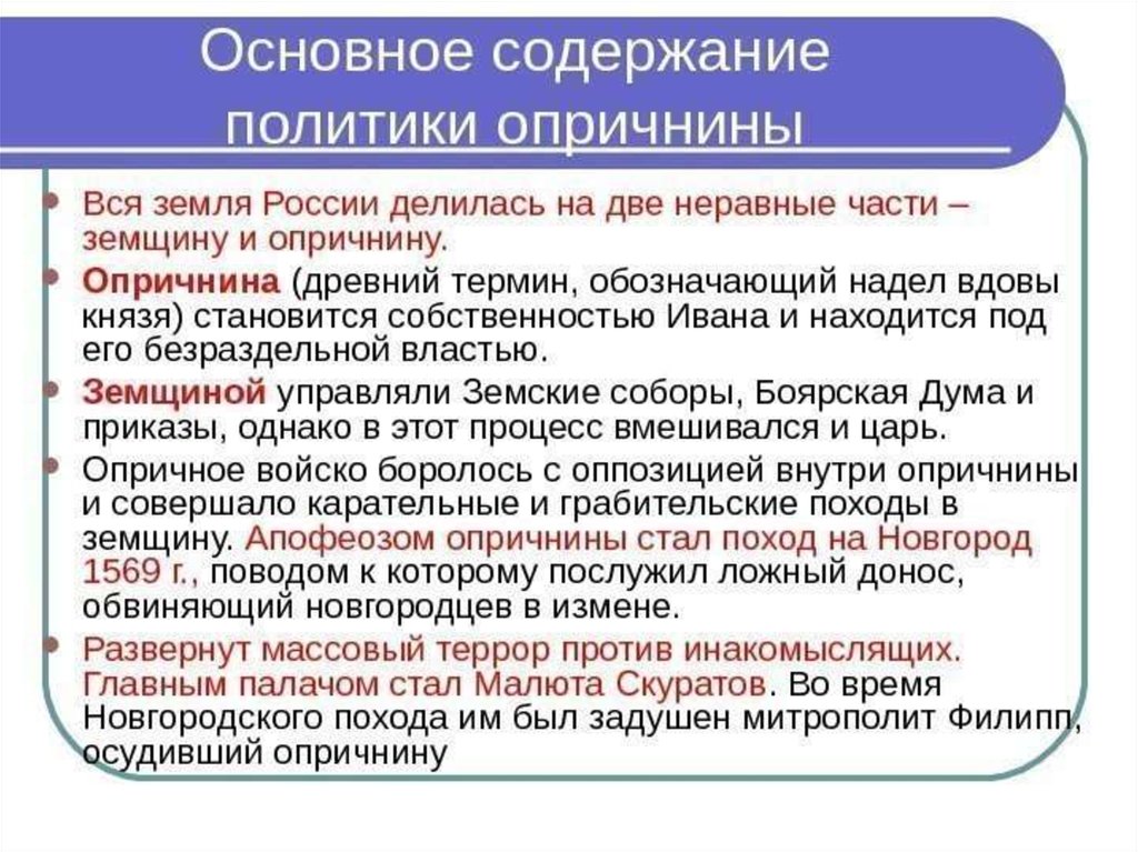 ОПРИЧНИНА (1565-1572гг.) – система мернаправленная на укрепление царской власти и