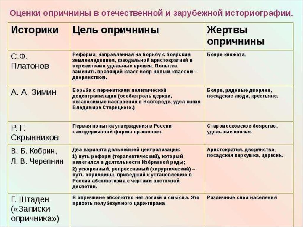 9.Опричнина (цель, методы и средства, результат).