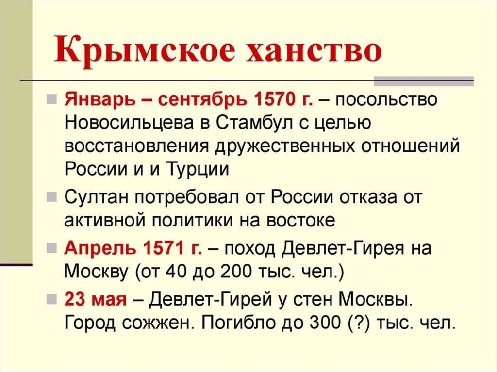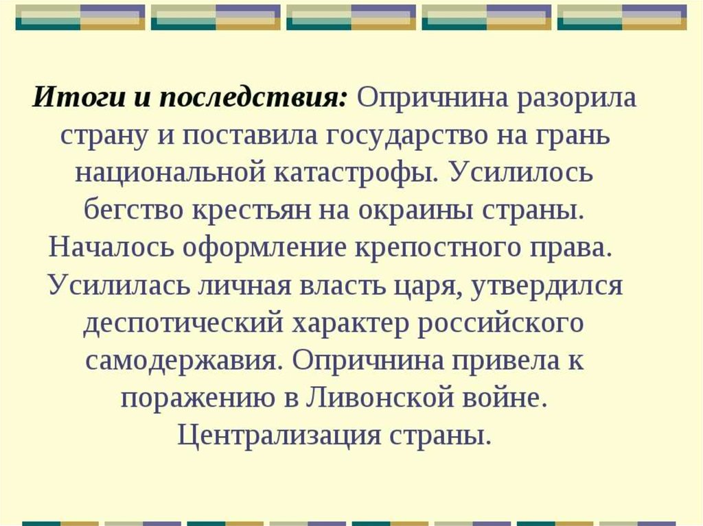 - ослабление страны из-за опричнины.