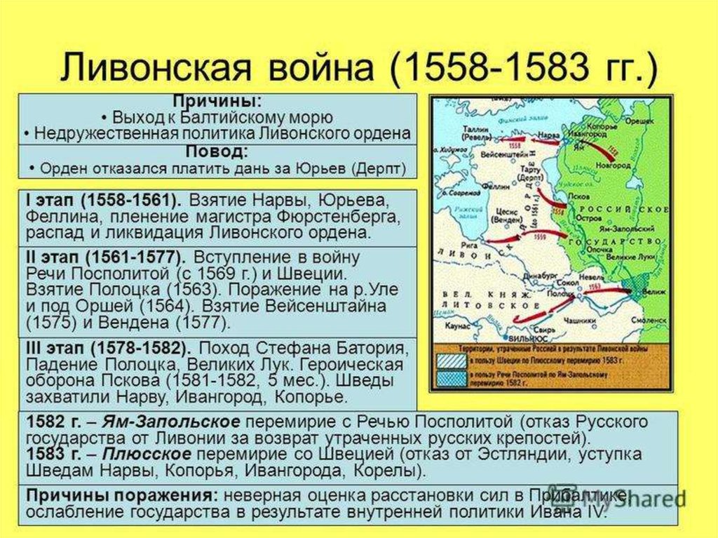 Причины поражения России в Ливонскойвойне: