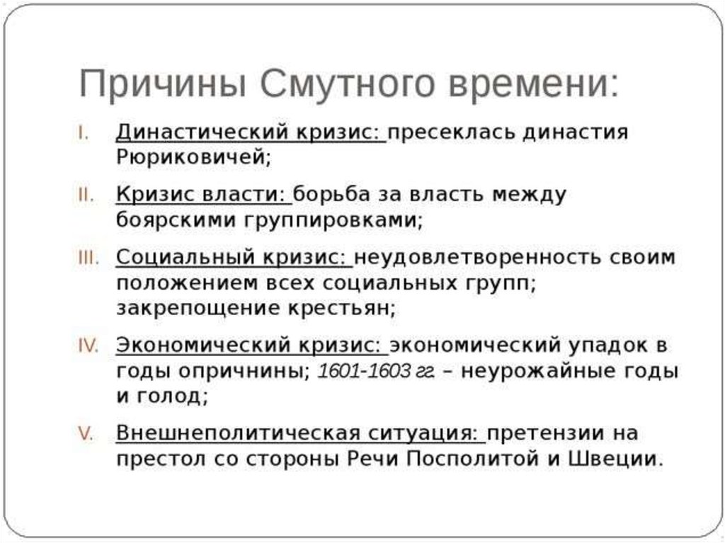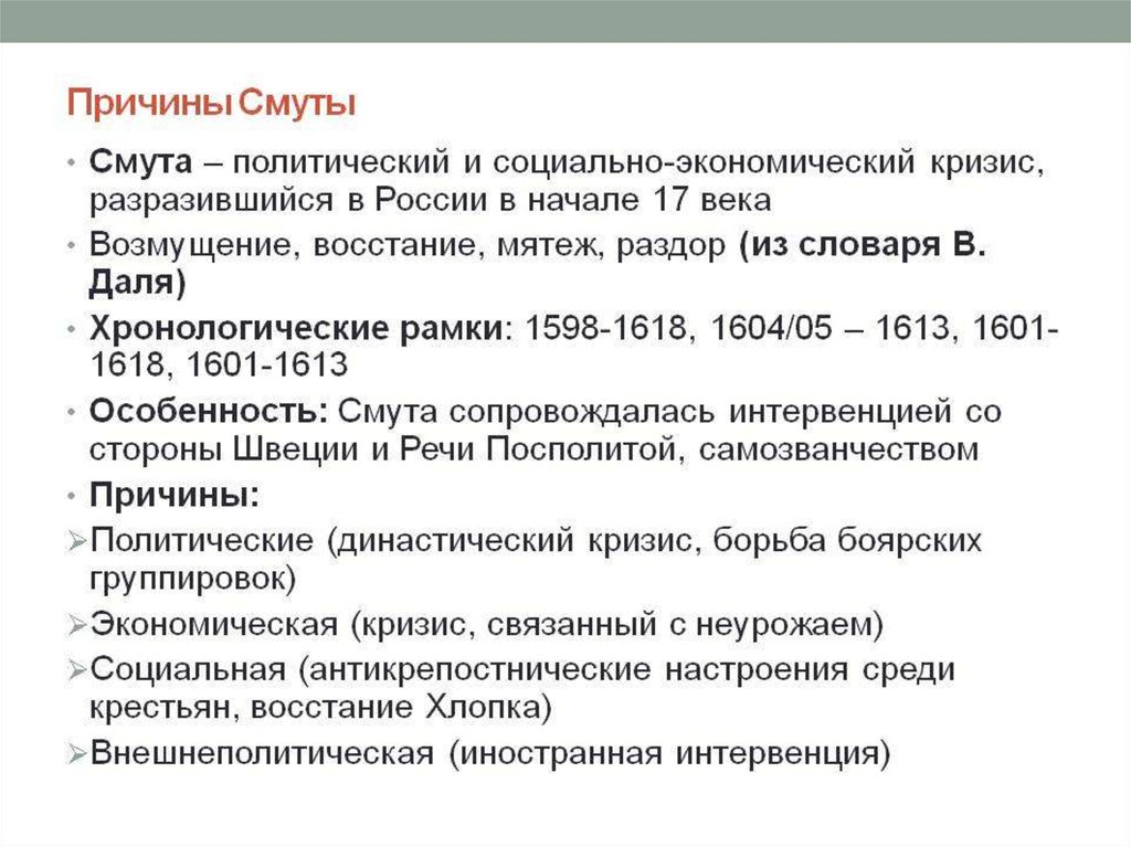 ПЛАН:1. Причины Смуты.