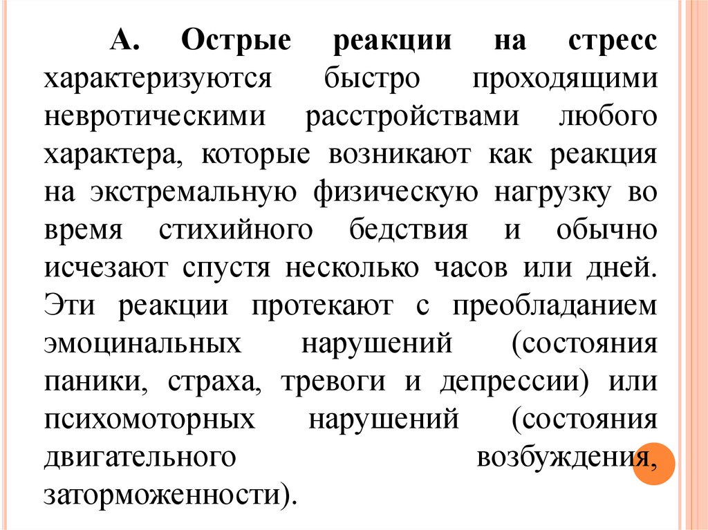 В. Адаптационные (приспособительные)реакции выражаются в легких или преходящих