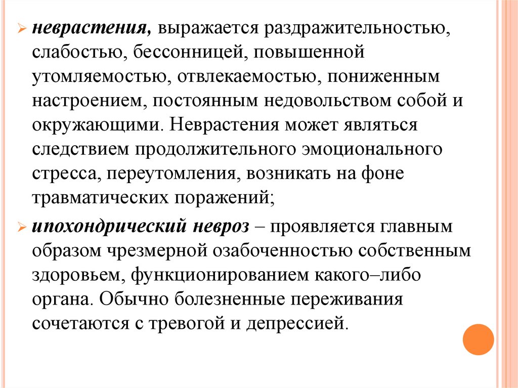 неврастения, выражается раздражительностью,слабостью, бессонницей, повышенной