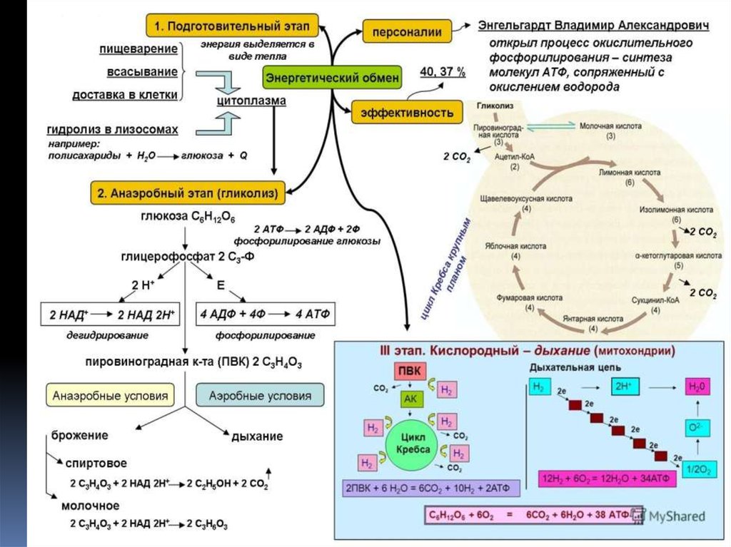 молекула глюкозы С6Н12О6 ступенчато расщепляется и