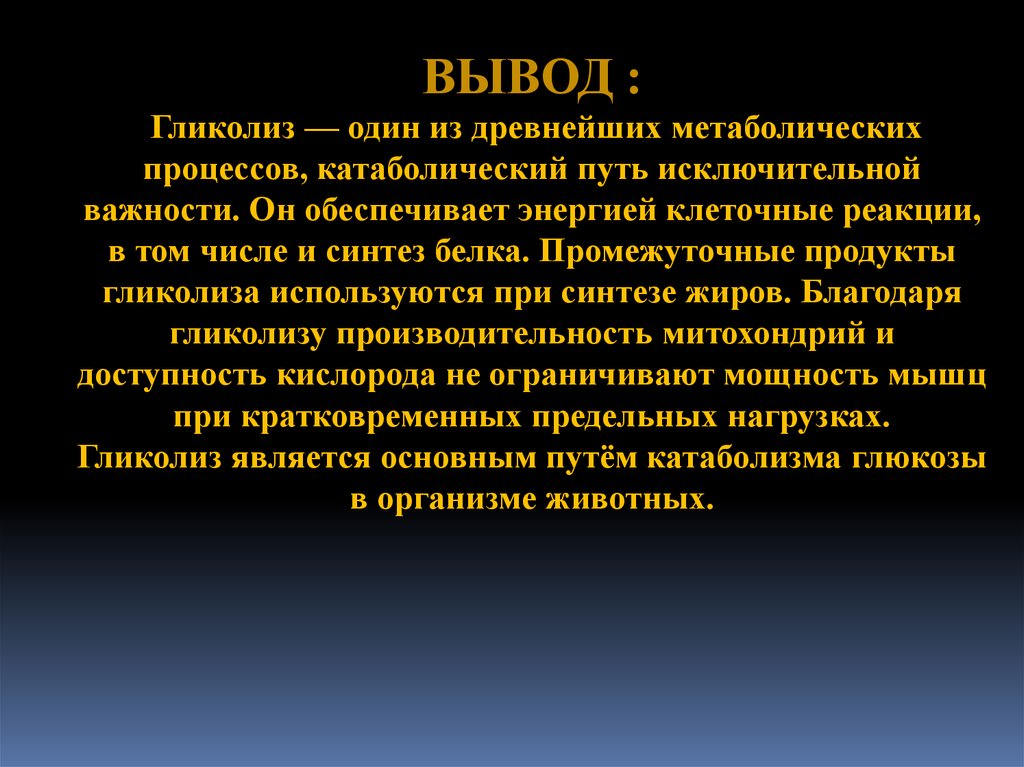 ВЫВОД :Гликолиз — один из древнейших метаболических