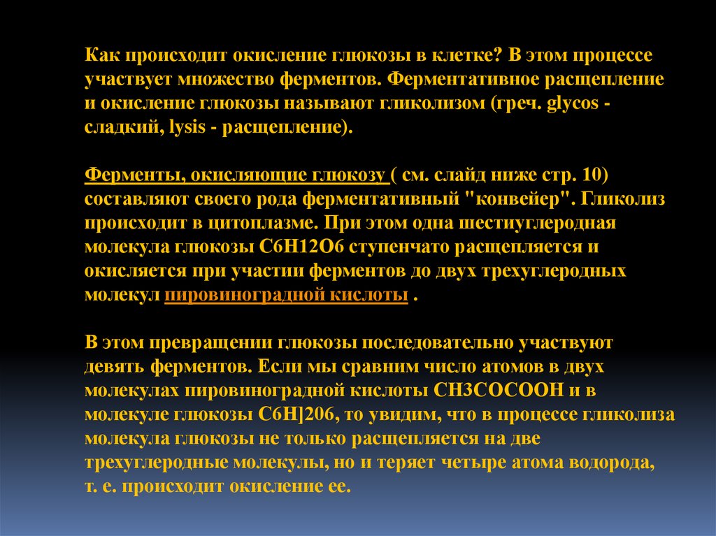 и окисление глюкозы называют гликолизом (греч. glycos сладкий, lysis - расщепление).