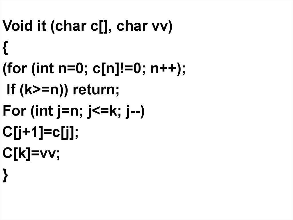while (in [ i ] !=0) i++; for (k=0; in[ i] != ‘ ‘