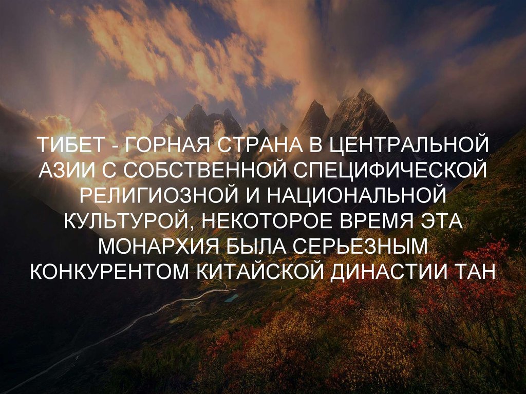 ТИБЕТ - ГОРНАЯ СТРАНА В ЦЕНТРАЛЬНОЙАЗИИ С СОБСТВЕННОЙ СПЕЦИФИЧЕСКОЙ
