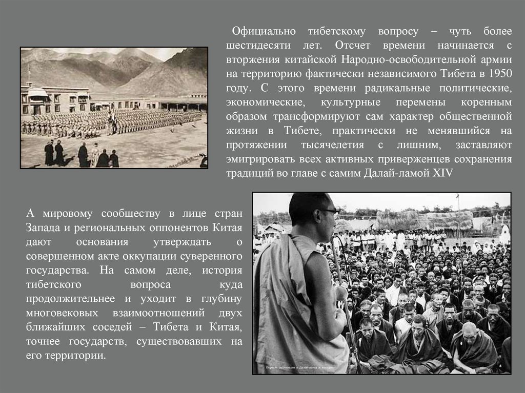Официально тибетскому вопросу – чуть болеешестидесяти лет. Отсчет времени начинается с