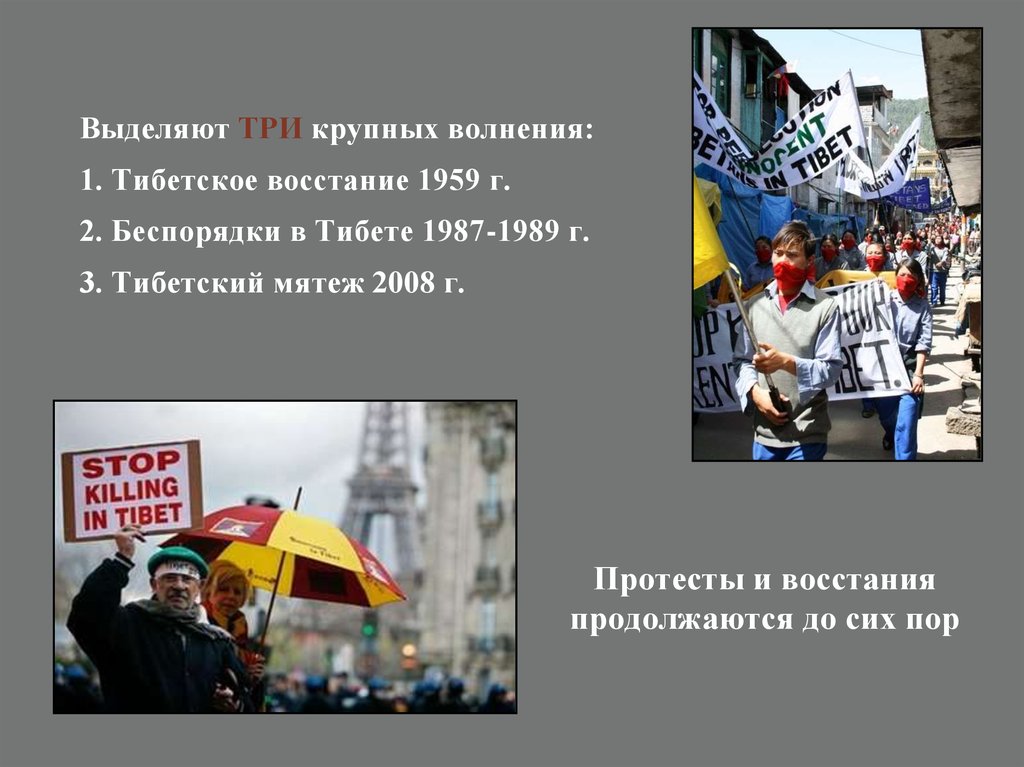 Выделяют ТРИ крупных волнения:1. Тибетское восстание 1959 г.