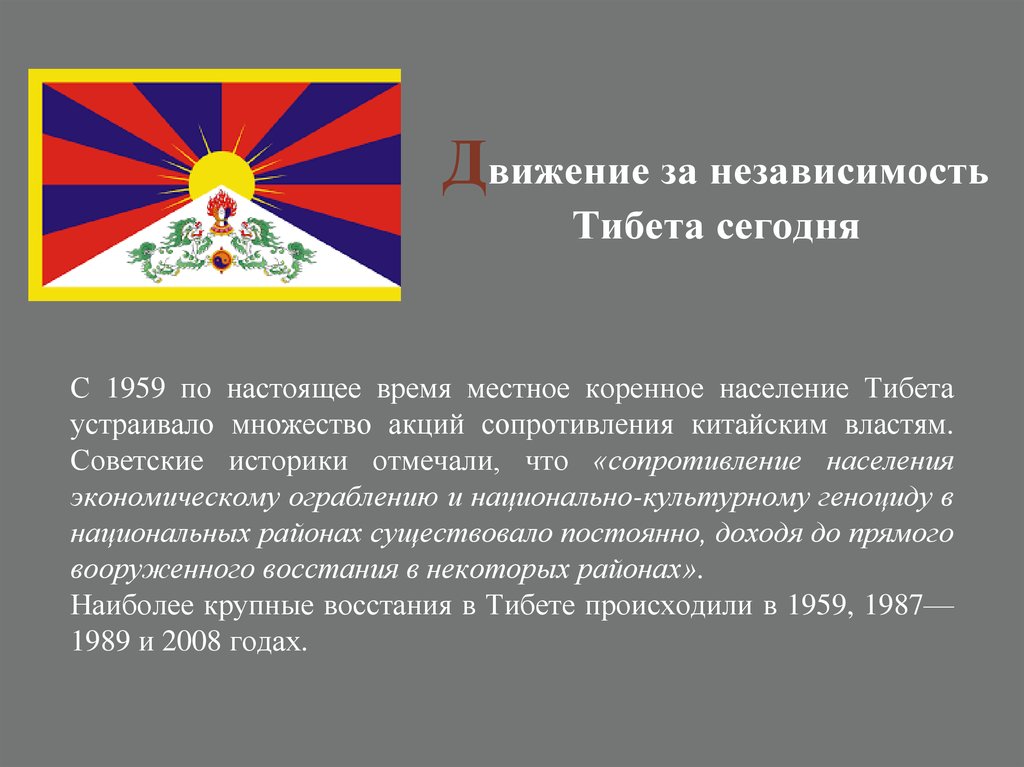 Наиболее крупные восстания в Тибете происходили в 1959, 1987—