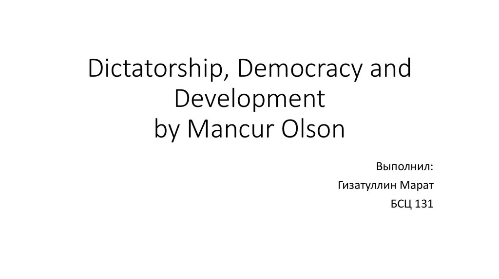 1. Dictatorship, Democracy and Development by Mancur Olson