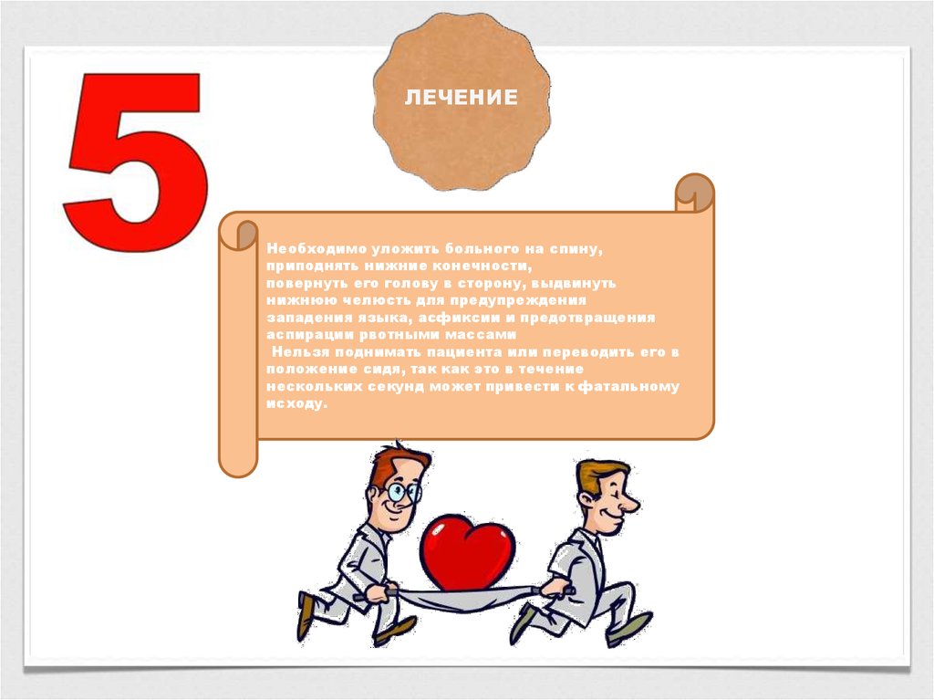 ЛЕЧЕНИЕНеобходимо уложить больного на спину,