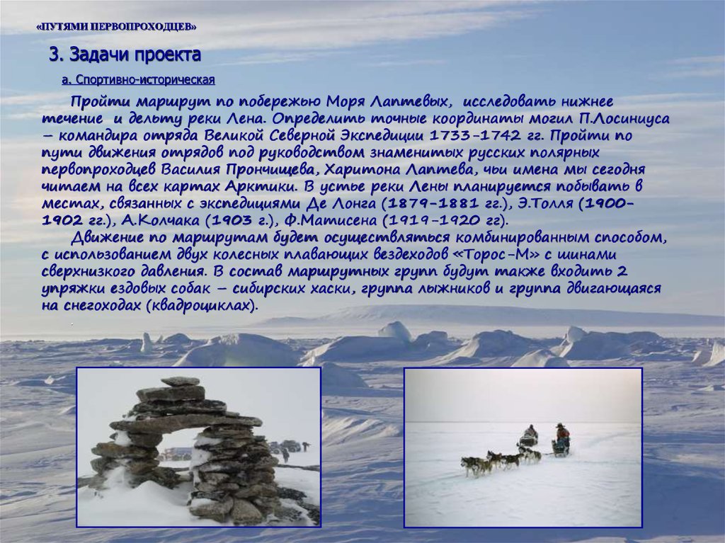 «ПУТЯМИ ПЕРВОПРОХОДЦЕВ»3. Задачи проекта