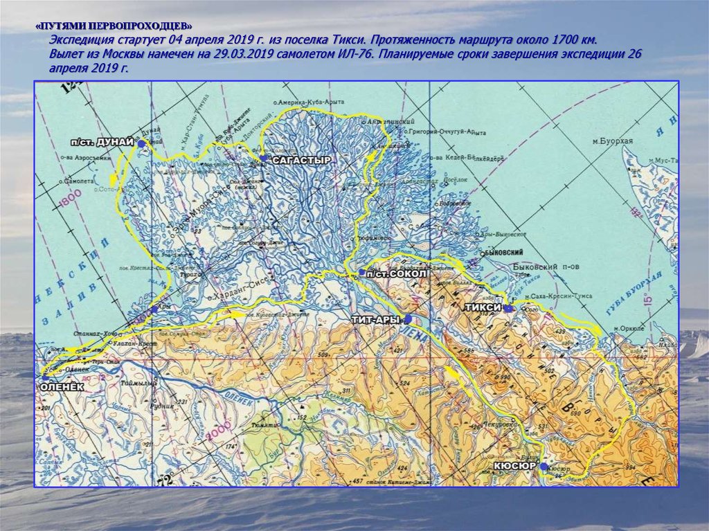 «ПУТЯМИ ПЕРВОПРОХОДЦЕВ»Экспедиция стартует 04 апреля 2019 г. из поселка Тикси. Протяженность маршрута около 1700 км.