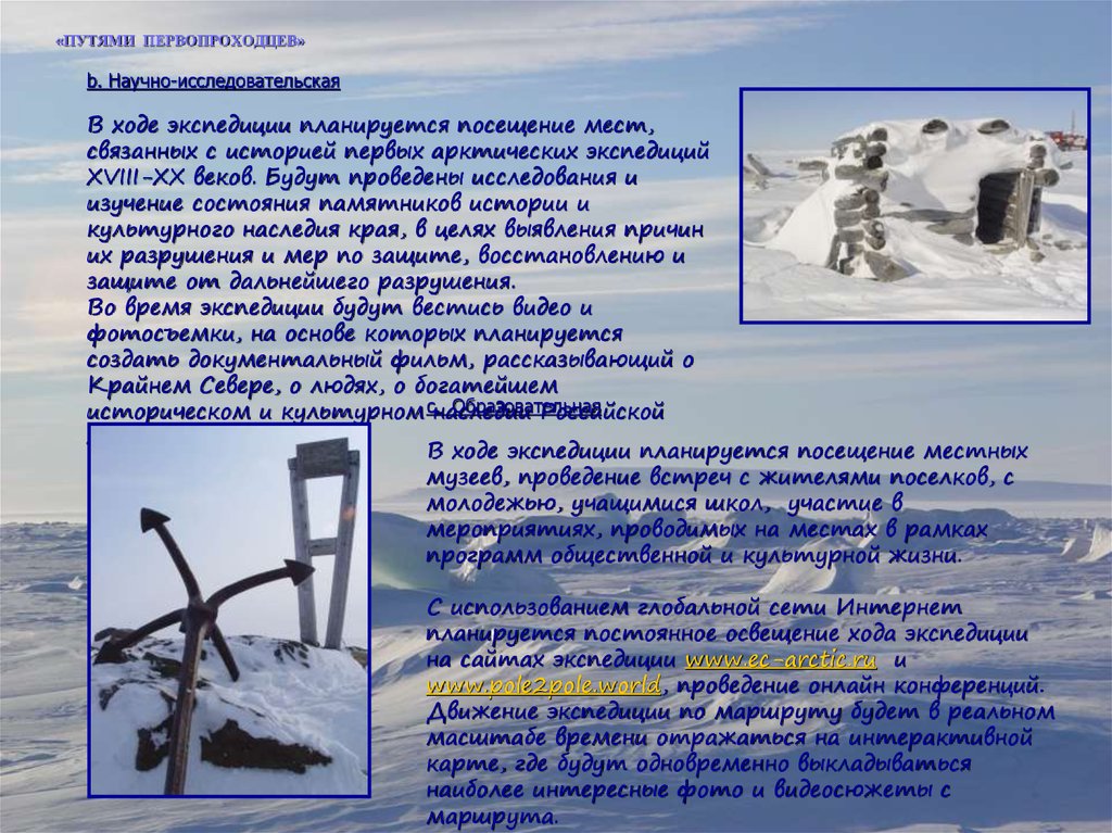 «ПУТЯМИ ПЕРВОПРОХОДЦЕВ»b. Научно-исследовательская