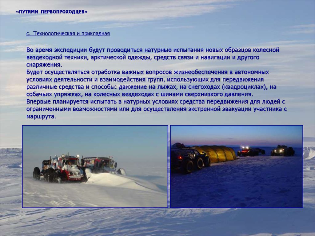 вездеходной техники, арктической одежды, средств связи и навигации и другого