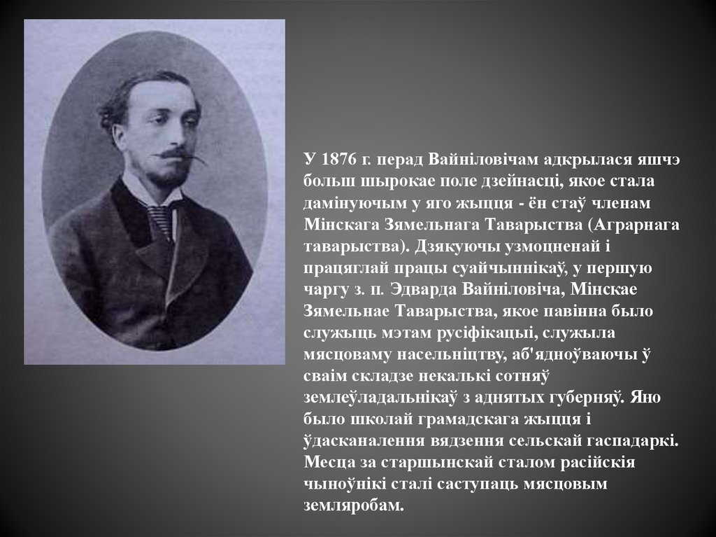 У 1876 г. перад Вайніловічам адкрылася яшчэбольш шырокае поле дзейнасці, якое стала