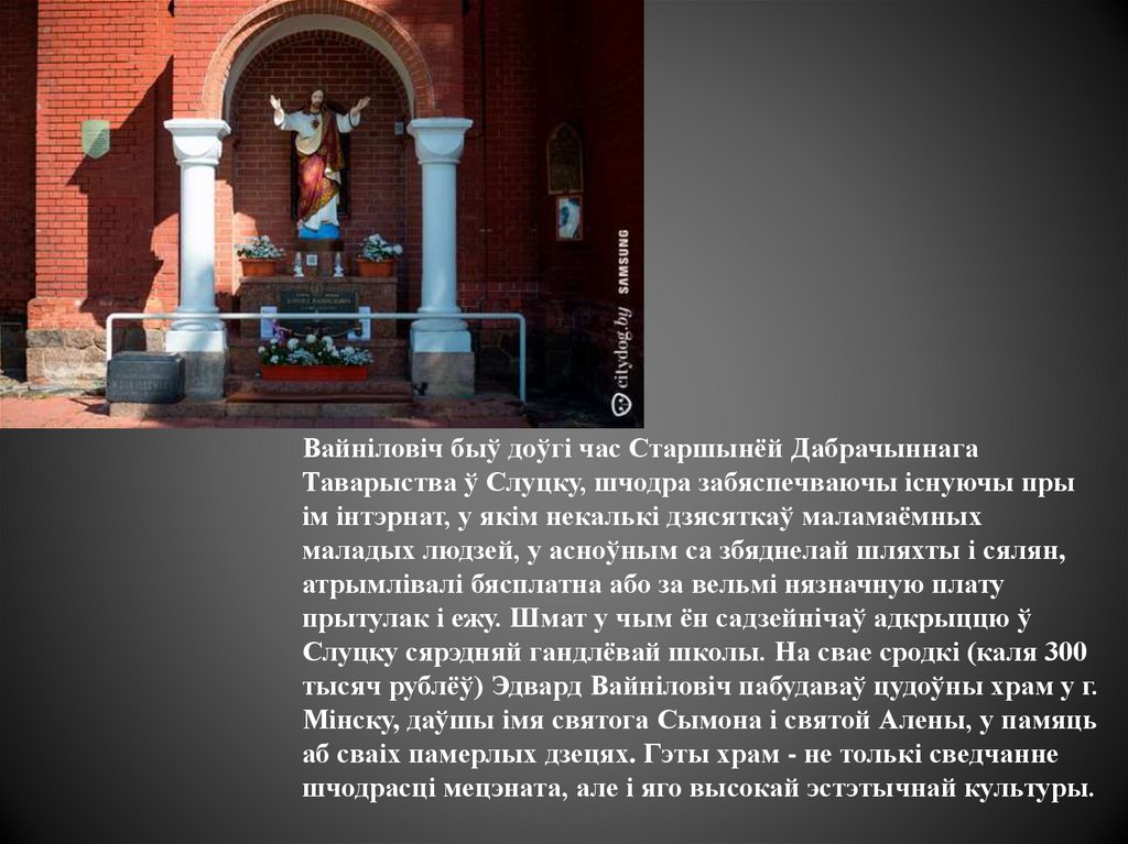 тысяч рублёў) Эдвард Вайніловіч пабудаваў цудоўны храм у г.