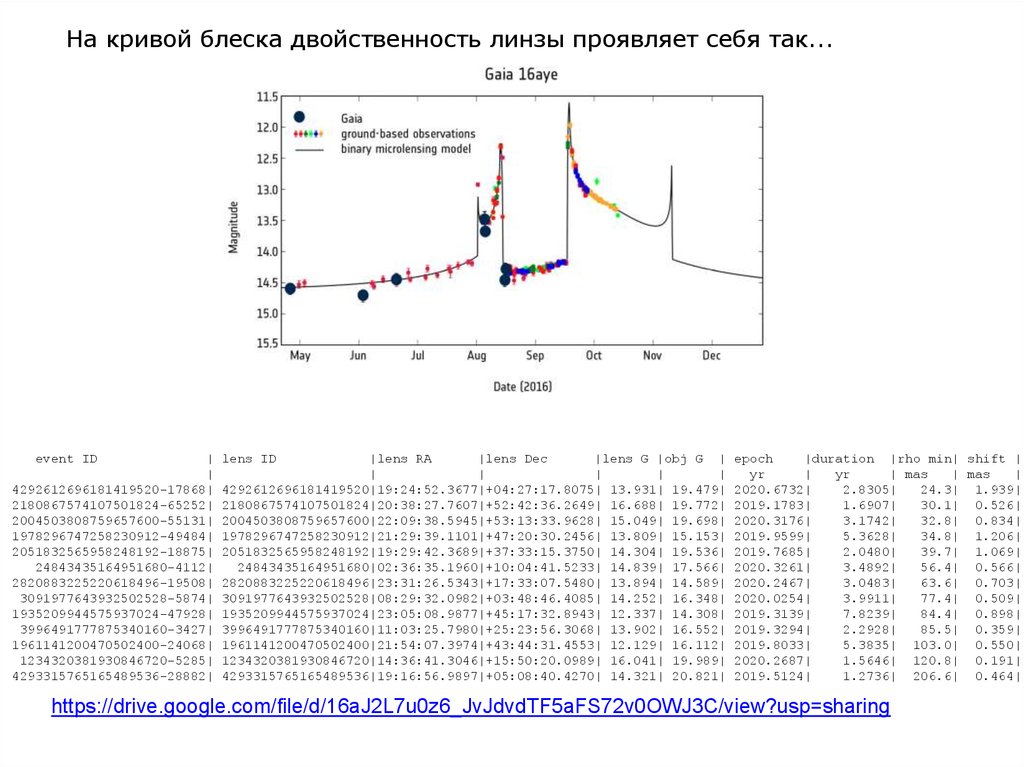 На кривой блеска двойственность линзы проявляет себя так...event ID