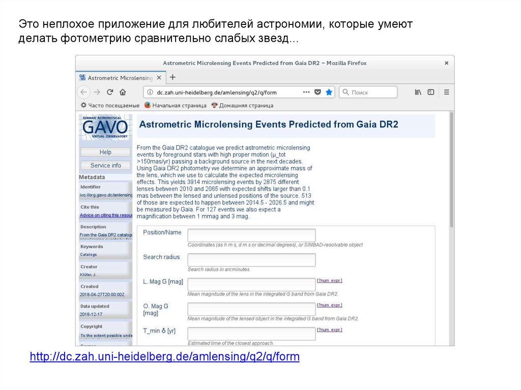 Это неплохое приложение для любителей астрономии, которые умеютделать фотометрию сравнительно слабых звезд...