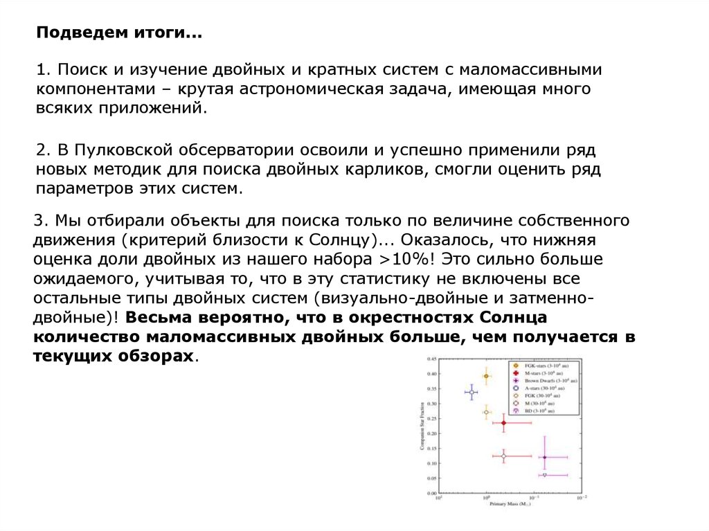 Подведем итоги...1. Поиск и изучение двойных и кратных систем с маломассивными